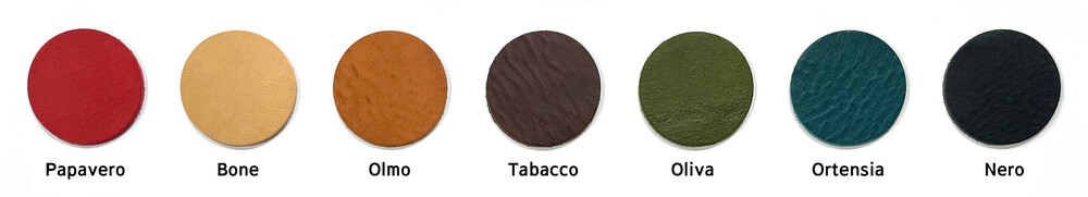 Red(Papavero), Beige(Bone), Orange Brown(Olmo), D/Brown(Tabacco), Olive(Oliva), Blue Green(Ortensia), Black(Nero)